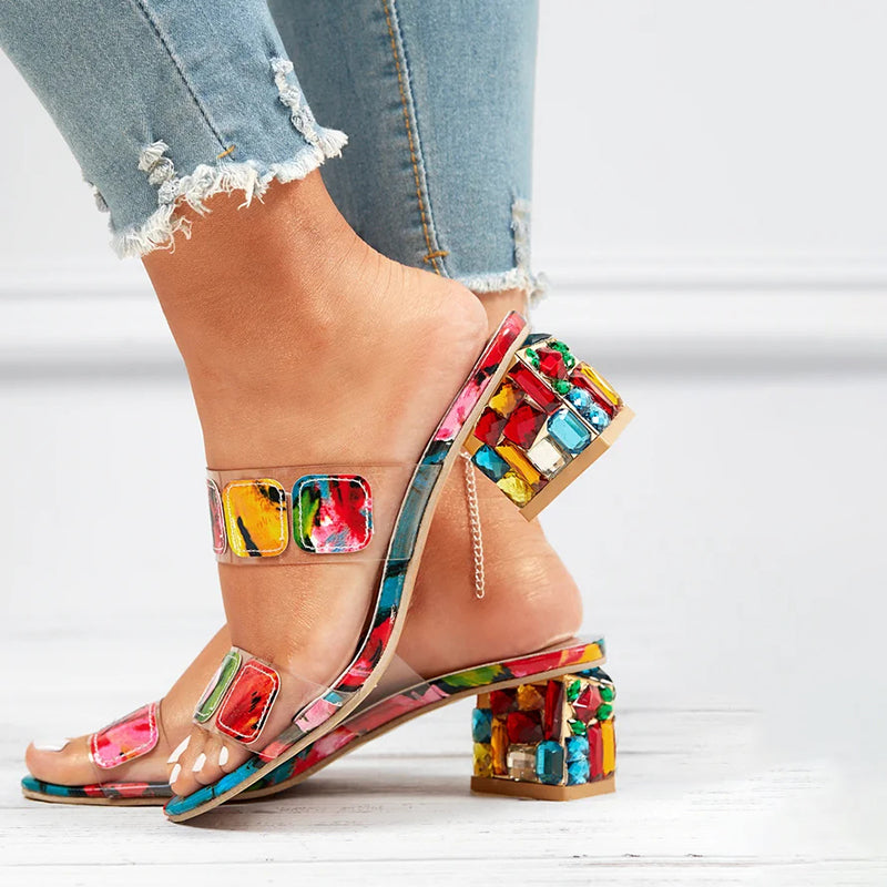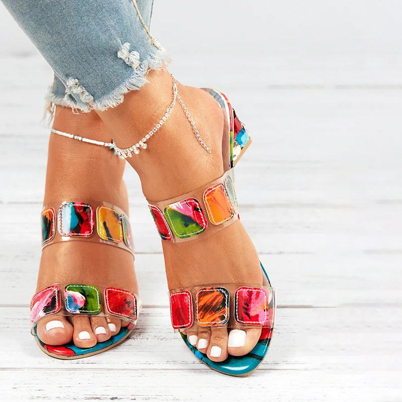 Pantoufles Colorées À Talon Épais